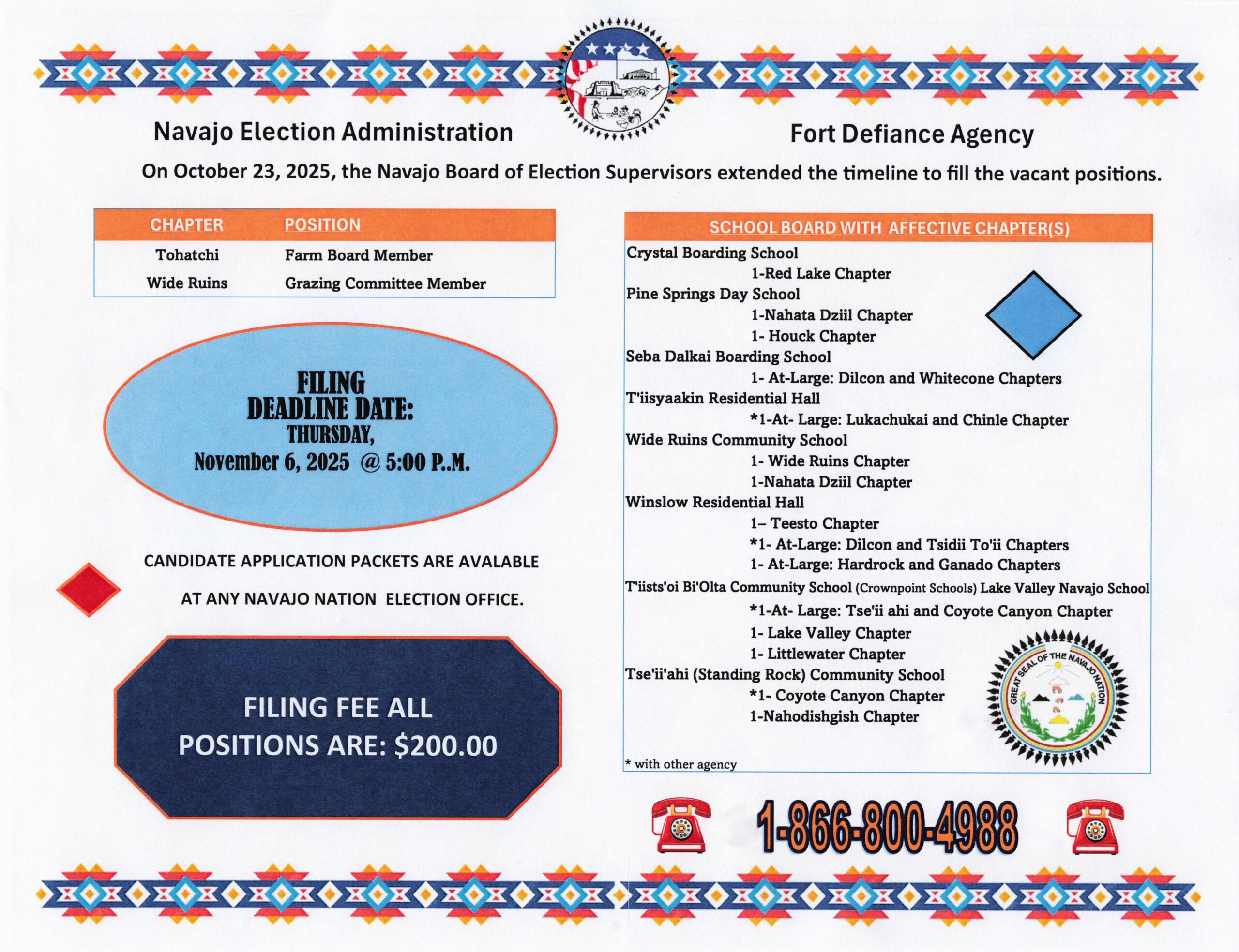 For Employment Application, you can go to the “Forms” tab above or come to Teesto Chapter to pick up one. If you have any question, you can give give us a call at (928)657-8042.